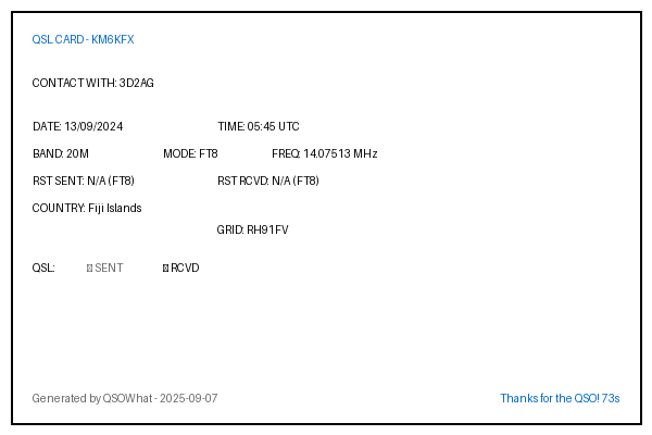| KM7H | 2024-10-15 | 16:49 | 20M | FT8 | United States Of America |